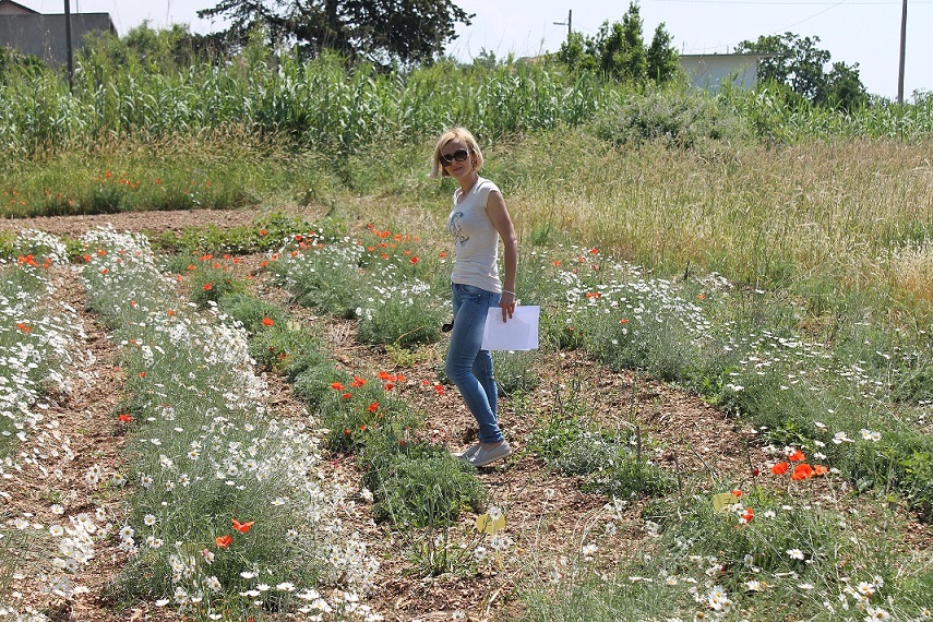 Martina Grdiša uzorkuje cvjetne glavice za potrebe kemijskih analiza, Kaštel Stari, lipanj 2018.
