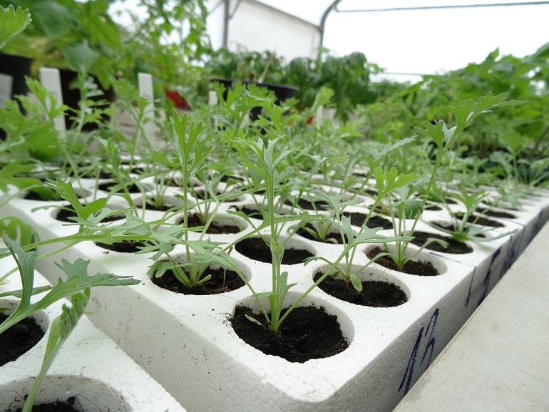 Postavljanje poljskog pokusa - mlada biljka dalmatinskog buhača; Kaštel Stari, 2017.